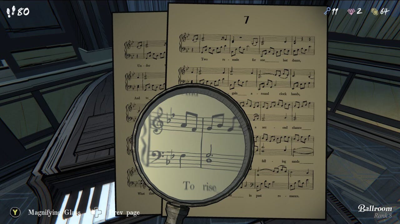 Each in-game day, players are presented with an empty 9x5 grid, and must draw up a new layout for the house. They do so by exploring the rooms in first-person, then choosing one of three randomly-chosen blueprints at every closed door. There’s a fair bit of strategy involved in choosing how to move through the house and where to place rooms, but as the day’s floor plan solidifies, the player’s focus shifts to solving puzzles. A given room will hold both self-contained puzzles (how do I open the safe in the Drawing Room?) and subtle clues to larger, estate-wide mysteries (why are there different chess pieces on the shelves?). Solve enough of the latter, and the mansion’s backstory begins to emerge, an unusually engrossing tale of family, politics, and revolution that I’m still in the process of unspooling.